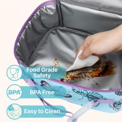 Kids Lunch Bag for Girls with Buckle Handle Portable Reusable Toddler Leak-proof Lunchbox for School and Daycare, Blue Butterfly
