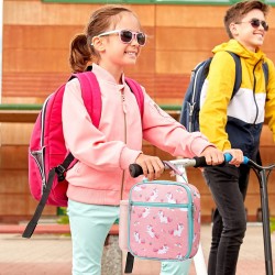 Insulated Lunch Box Bag for Girls, Portable Reusable Toddler Lunch Cooler Bag for School, Water-resistant Lining(Pink, Unicorns)