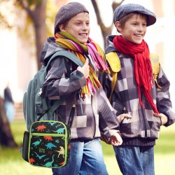 Insulated Lunch Box Bag for Boys, Portable Reusable Toddler Lunch Cooler Bag for School, Water-resistant Lining(Black & Dinosaur)